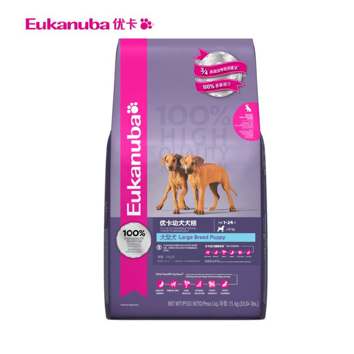 世界顶级犬粮,100%原装进口,优卡大幼15KG,专为成长极为快速的大型犬幼犬设计,为您的爱犬带来健康与活力!
